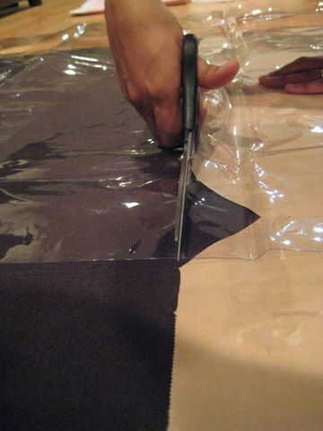 recorte el plástico para que coincida con las líneas discontinuas rojas en el patrón.