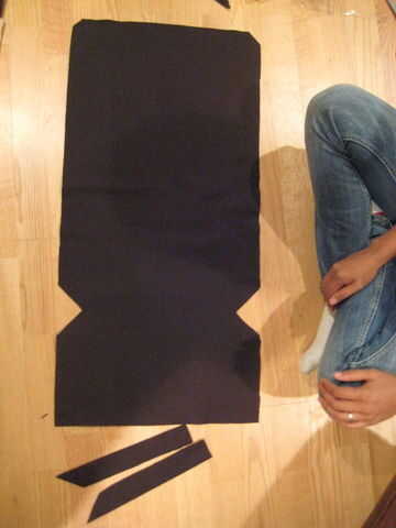 Ahora que tienes tu patrón grande hecho, usted necesita cortar un patrón para las tiras de apoyo. Cortar una tira de papel alrededor de una pulgada y media amplia. poner la tira en la parte superior del patrón por lo que pone donde se indica en el patrón anterior. Corte el extremo de la tira en el mismo ángulo que la muesca.