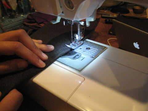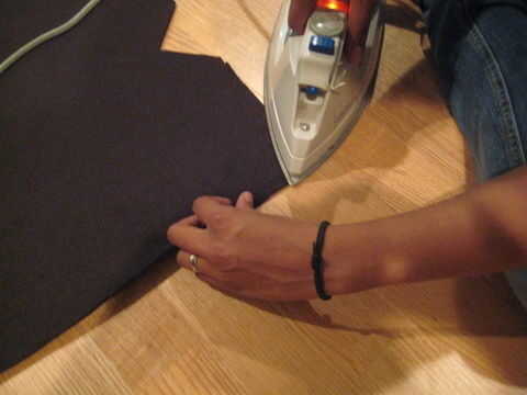 pliegue sobre una franja de media pulgada en el lado corto de la hoja grande de fieltro. plancha hacia abajo para que tenga un pliegue bien. entonces, lo cose abajo. se trata de la parte delantera de su bolsillo. probablemente usted puede conseguir lejos con no planchar primero, pero se ve mejor si lo haces.