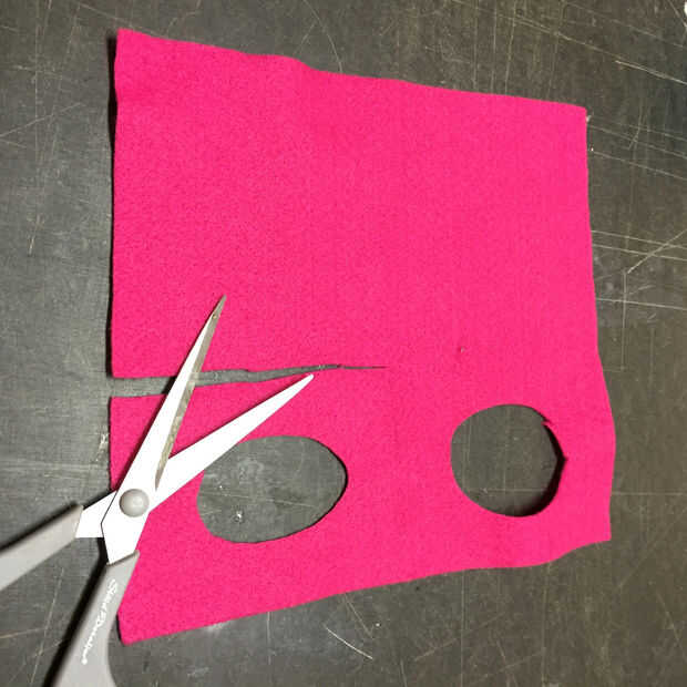 Doblar la pieza por la mitad y corte un agujero en la parte superior a través de ambas capas de tela (imagen 1:2)