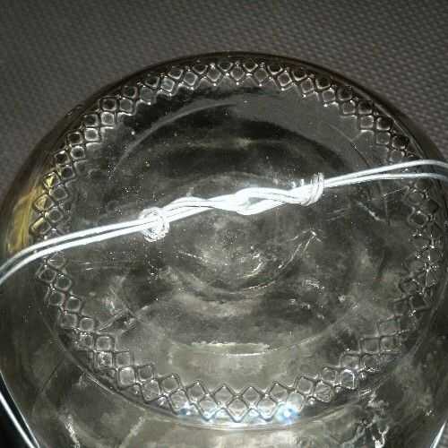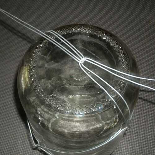 La jarra es ahora bien sujeto por la base de alambre.