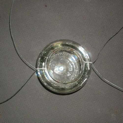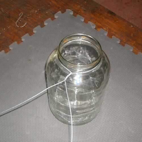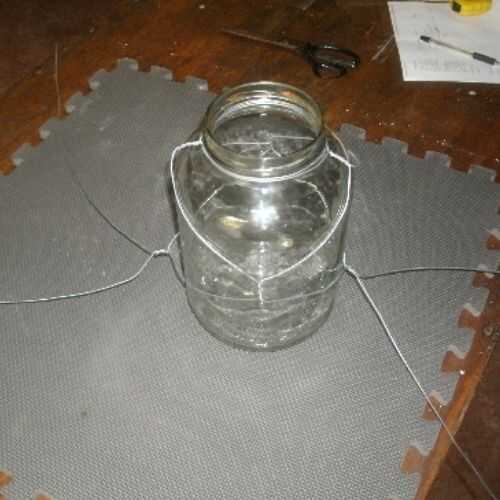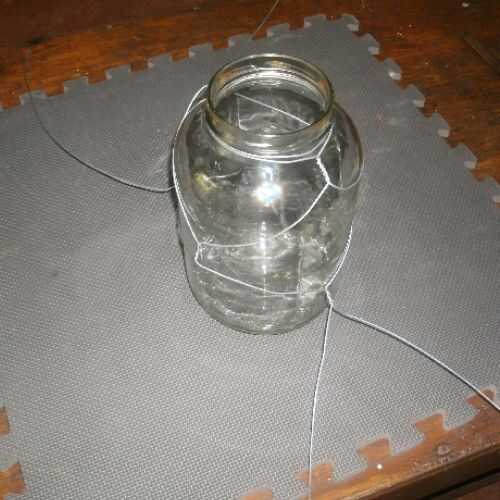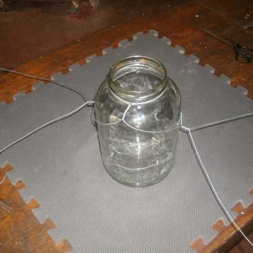 Invierta el frasco. Tener los cables emparejados de ambos lados y les unen en el fondo del frasco como se muestra. Estire los twist y pellizcarlos. Corte el alambre sobrante.