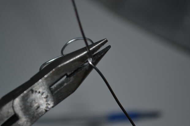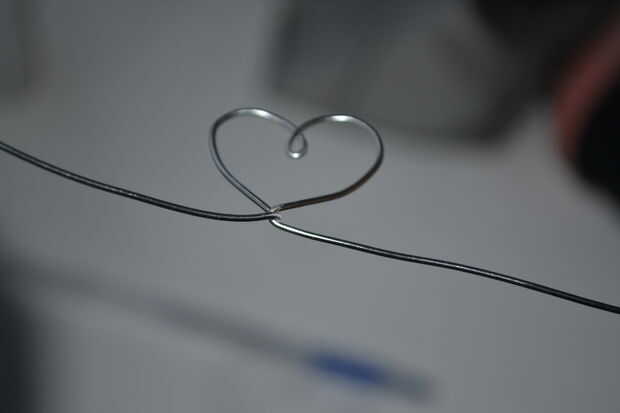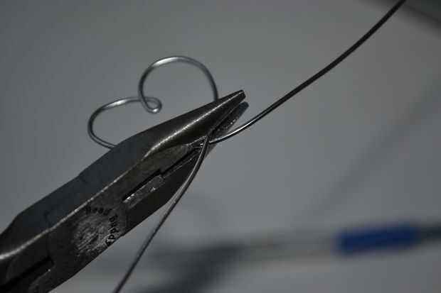 Sostenga la parte inferior del corazón con las pinzas así que fácilmente puede torcer los alambres juntos.
