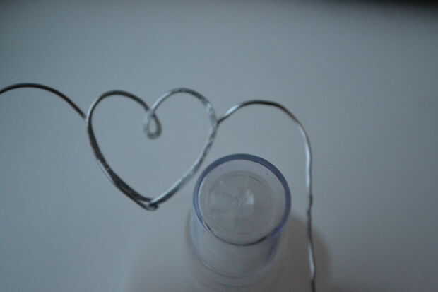 1. Tome el objeto circular más grande. Envuelva los trozos de alambre de cerca el corazón a medio camino alrededor del objeto para crear una forma de U de la curva. Ver fotografías. Además, siento la borrosidad de algunas de estas fotos, vaya.