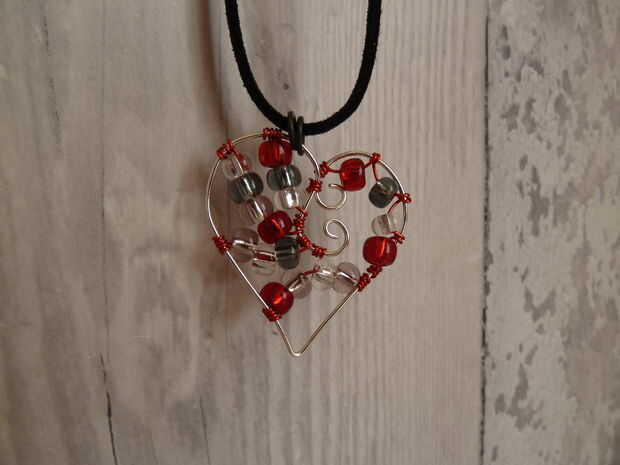 Este colgante de corazón hizo Cienna, un miembro de la familia Pegasaurus.Comenzó hacia fuera como "me pregunto si puedo poner juntos como una forma de pegamento caliente. Sería a mamá trabajo?"A lo que respondió "probarlo y averiguar.Mi re
