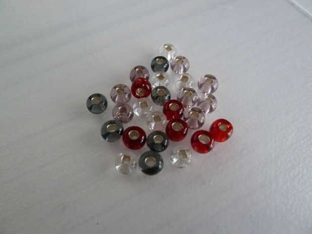después de hacer pulseras, que tenía algunos granos de izquierda... y algunos restos...así que de todos estos materiales sobrantes hice un colgante en forma de corazón.para hacerlo que necesitamos-perlas de cristal (preferentemente color rojo)-granos