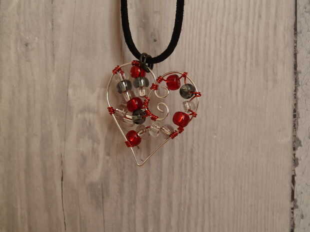 Este colgante de corazón hizo Cienna, un miembro de la familia Pegasaurus.Comenzó hacia fuera como "me pregunto si puedo poner juntos como una forma de pegamento caliente. Sería a mamá trabajo?"A lo que respondió "probarlo y averiguar.Mi re