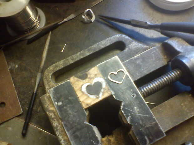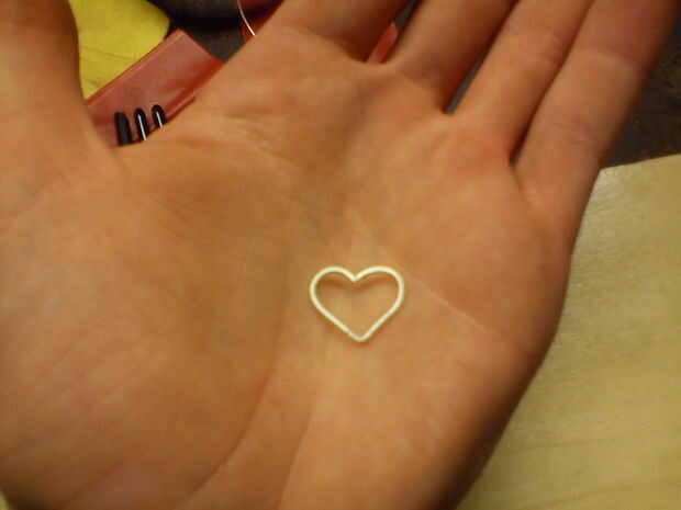 Para poner el alambre de plata en, empezar haciendo una ranura en la pieza ahora doble de madera. Con una broca puntiagudos en su dremmel, empezar a hacer la ranura. No tienes que hacer grande suficiente derecho a la vez, hacerlo por lo que es un surco pequeño. Ahora toma el alambre de plata, ponga la punta de la misma en la parte superior del corazón (donde con a los dos círculos de media) y empezar a doblarla alrededor en la ranura, hasta que tenga una forma única, que se ajuste exactamente a su colgante. Ahora cuando vuelvan la dremmel y hacer la ranura lo suficientemente grande para el corazón de plata para allí. Guarde el comprobar el ajuste, simplemente tratando de colocar el corazón plata allí.