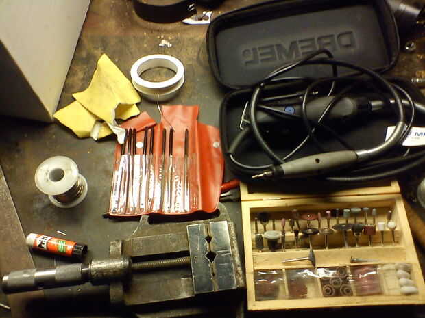 Una Dremel (casi imprescindible) para hacer el orificio en la parte exterior y que la arboleda para el alambre de plata.