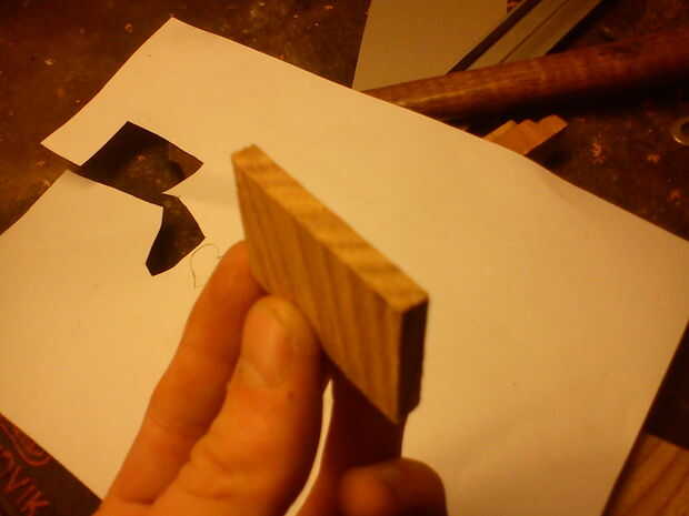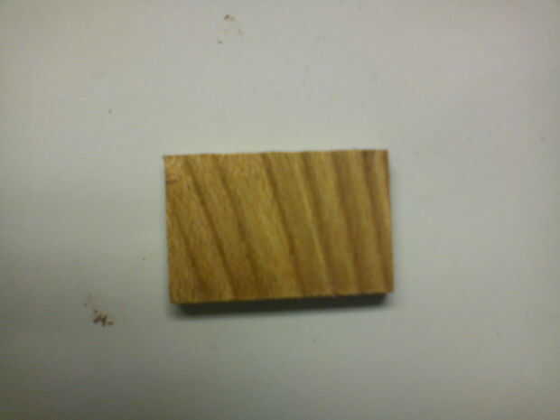 Ahora es hora de empezar a cortar los trozos grandes de madera. Para la parte exterior, hice una pieza aproximadamente 6 x 4 x 0, 7 cm. No importa lo grande que es, sólo asegúrate de que tus piezas de papel encajan en él. El espesor es importante aunque, quería que la pieza final a ser de 0,5 cm, así que hice esto un poco más grande, 0,7 cm. Si se pone mucho más grueso, será muy difícil hacer el agujero en forma de corazón en el medio lo suficientemente exacto.
