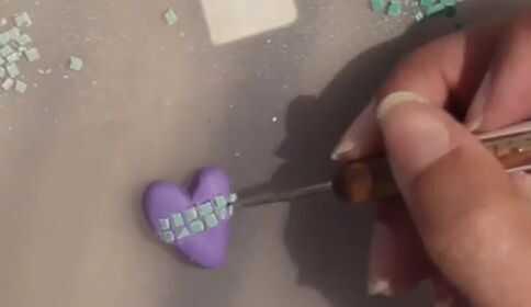 Empezar a presionar las baldosas hasta el corazón, a partir de la media. He encontrado que es más fácil recoger los azulejos con las pinzas, colóquelos donde que desea, luego presione con la aguja o palillo de dientes.