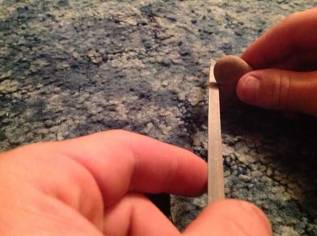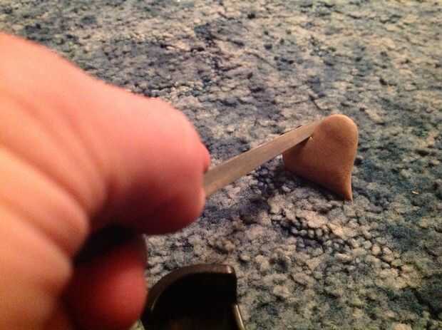 Sólo usé un trozo de papel de grano arena 100 para obtener la curva final que quería. no podía entrar la muesca del corazón con el papel de lija usé un archivo triangular para llevar el material a donde yo quería. Creo que este paso es muy importante porque los otros granos de lija no llevar mucho material, así que asegúrese de que es la forma que usted quiera para no tener que volver a las arenas de baja.