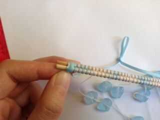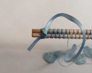 Usé cinta como el material colgante. Para acoplarlo, até un extremo de la cinta a un extremo de los pinchos (ser cuidadosamente que si sus pinchos tienen una parte delantera y trasera, usted probablemente querrá los nudos de la cuerda de la brocheta en la parte posterior). Entonces decidió que quería que el nudo del centro para colgar a ser (solo globo ocularlo), hizo un lazo y lo pellizca. Luego ató un nudo en ese lugar de pellizco. Atar el otro extremo de la cinta en el otro extremo de los pinchos y ajustar la longitud para asegurarnos de que cuando, pinchos de su colgante cristal de mar será paralelas al suelo. Cuando estés contento con las longitudes, dab los nudos con pegamento y corta la cinta sobrante.