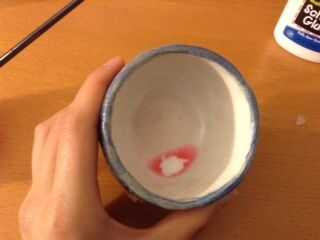 La solución a hacer requiere partes iguales de cola y agua coloreada (aunque sugiero usar pegamento un poco más que el agua). Tomar la Copa y vierta un poco de agua coloreada (teniendo en cuenta las "partes iguales", si se utiliza mucha agua, necesitarás un montón de pegamento) antes de agregar la misma cantidad de pegamento. Utilice el pincel para mezclar bien, y el resultado debe tener una consistencia que está más cerca que el pegamento al agua (no demasiado líquido-como).