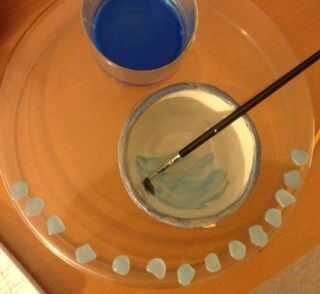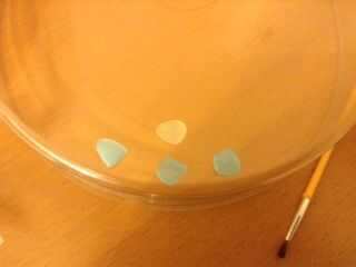Una vez tengas la mezcla, pintar su vidrio de mar con ella y deja el vidrio del mar en papel de cera o una superficie brillante (botella de plástico, por ejemplo) para que se seque. Utilicé una tapa de plástico. ^^