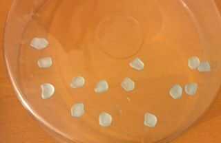 - Lo primero que probé fue dejando sólo un pequeño fragmento de vidrio de mar sentarse en el agua de color durante la noche. El pequeño fragmento se convirtió un poco teñido (rosa claro) pero el color frotado rápidamente.