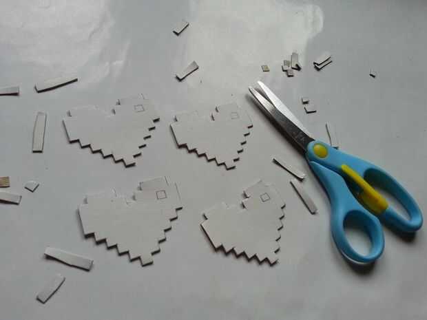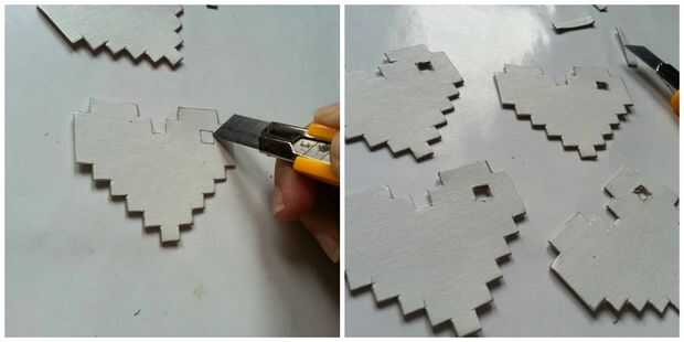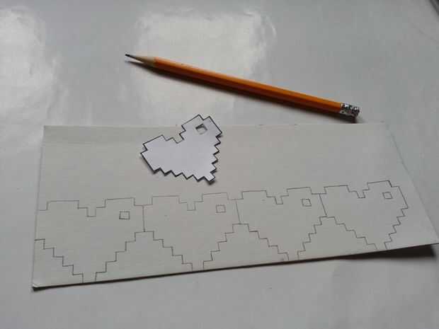 Coloque la plantilla de corazón pixelado en el papel grueso y trace una línea alrededor de los bordes con un lápiz.