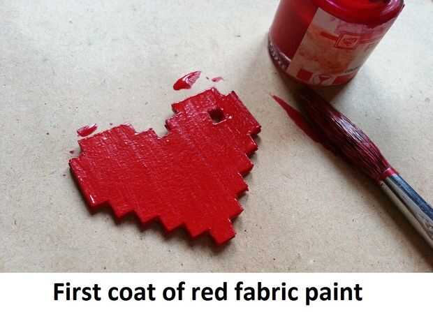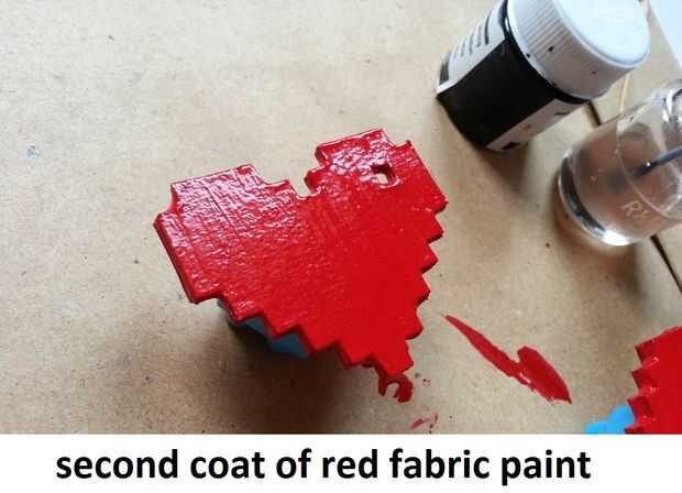 Aplicar al menos 2 capas de pintura de tela roja en el colgante del corazón, asegúrese de que la pintura uniformemente por todos lados,