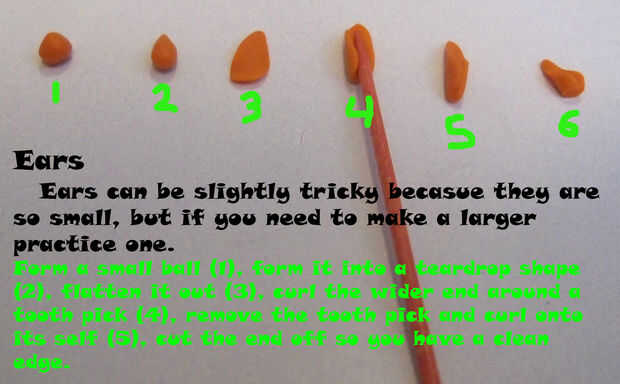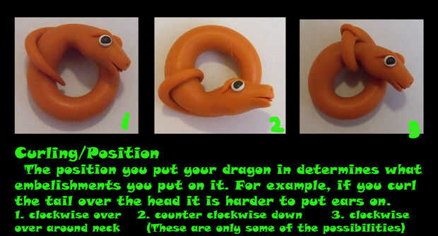 Ahora a hacer las otras características de la cabeza. Las orejas son un poco duro así que unos pocos y ver cuáles coinciden con. Siga los siguientes pasos para hacerlos. Al colocar las orejas pone un trozo pequeño de alambre en ellos así no rompen tan fácilmente. Si añades cuernos ponen alambre en ellos también. Ahora se encrespan su dragón en una posición que te gusta. Probar algunos antes de decidir.