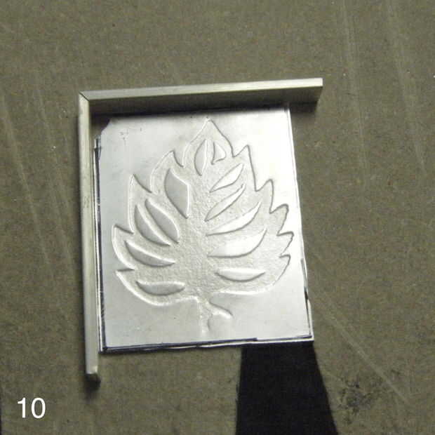 TIP---si usted encuentra que no se dobla lo suficiente; el ángulo en el puntaje puede no ser suficientemente amplia o profunda. Esto se puede solucionar por recocer el metal otra vez (o se romperá) y poco a poco abriendo la puntuación en orden para continuar la presentación. Luego repita el paso 5 (sí necesita templar otra vez antes de volver a doblar o se romperá)