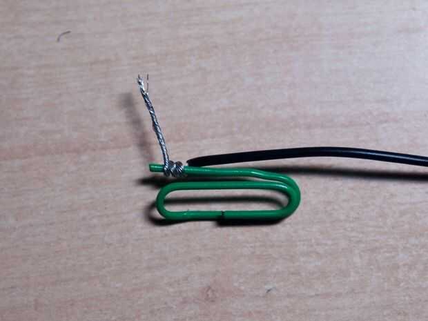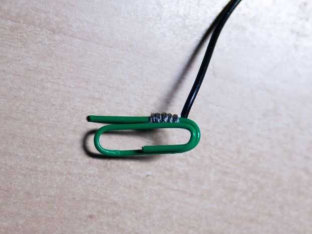 Ahora repita con el otro cable con el otro extremo del clip de papel (ver foto 6).
