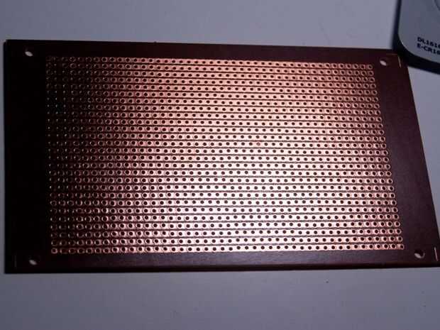 La placa de circuito es un genérico que tiene largas filas de ranuras conectadas. Esto es para hacer la conexión de los LEDs más fáciles mientras que proporciona un marco firme de los LEDs.