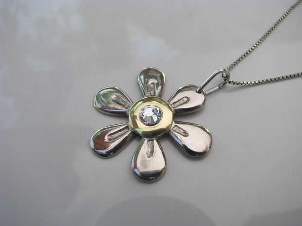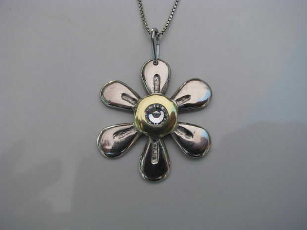 Para hacer que empecé por 3 monedas de corte por la mitad y formar áspero seis pétalos. Soldar los pétalos en una pila y me presentó a la misma forma. Después de soldar la pila, utiliza un clip para realzar y presentó los bordes redondos.