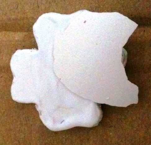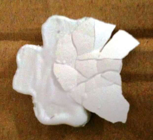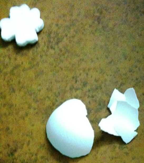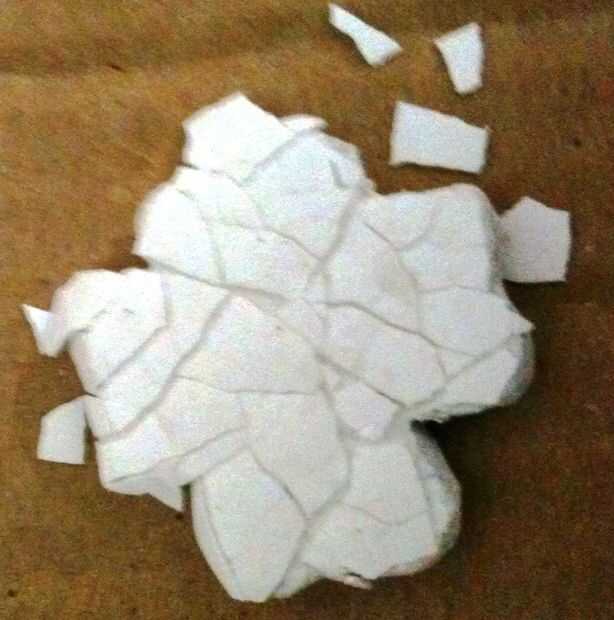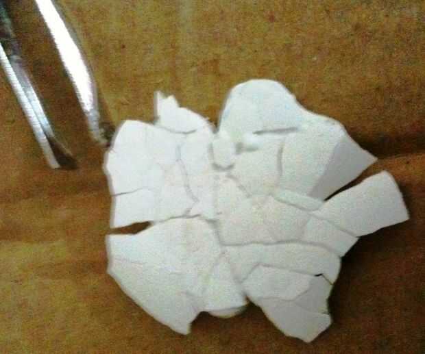 tomar la cáscara de huevo (primero limpiarla.. .removing todas las membranas en it... otra cosa no quedo bien)., coloque en su forma y presione con el dedo.