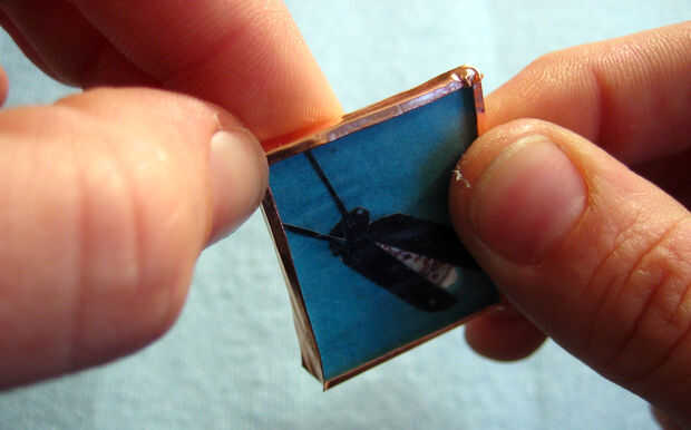 No es difícil trabajar con cinta de cobre. Línea primero los bordes. Aplasta dos lados opuestos abajo de plano. Ejecute la uña u otra superficie plana encima de ellos para hacer los bordes afilados. Luego aplastar los otros dos lados teniendo cuidado de hacer esquinas agradables. El aplanador el pliegue contra el vidrio de la más agradable su soldadura se verá cuando termine.