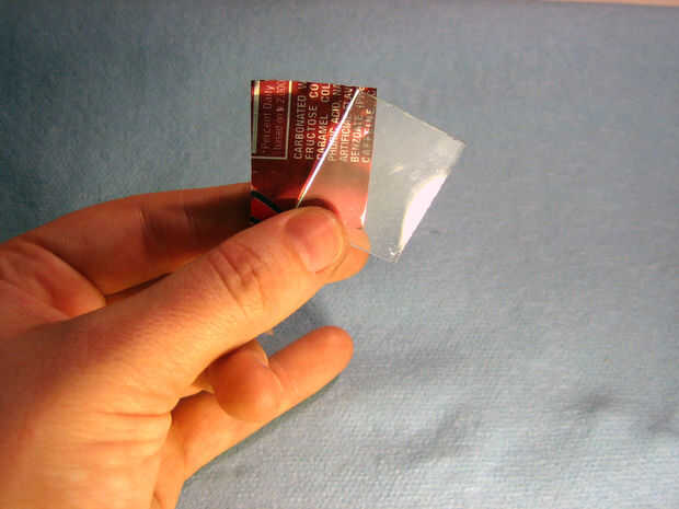 Corte un agujero en la imagen y el aluminio que el LED puede brillar a través.