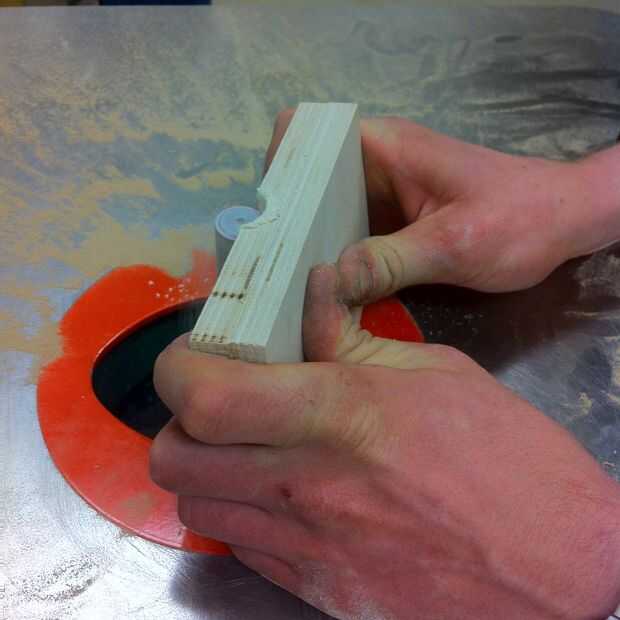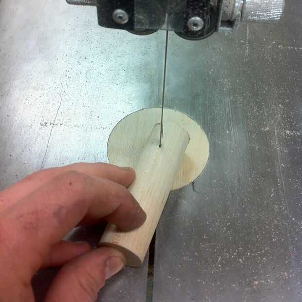 Con la lijadora de banda arena sea exactamente medio redondo en la parte superior y forma cónica para nada sobre dos y media pulgadas hacia abajo.