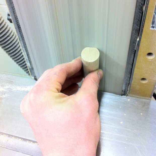 Ahora pegue el pasador a la pieza solo espesor de madera contrachapada para que alinee con el canal cuando los dos lados del molde de su cara.