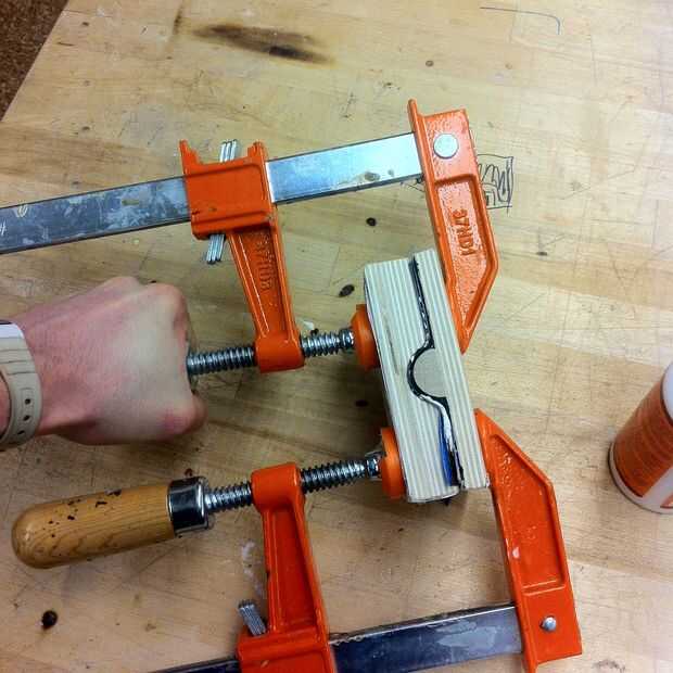 Una vez hecho esto con ambas mitades del pegamento aplique colgante en las partes planas y sujetarlos juntos. Pegamento apretando aquí es más un problema porque es camino más difícil limpiar más tarde. Ser más conscientes sobre la cantidad de pegamento que se utiliza en este paso.