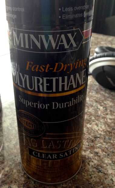 Usé un Pro grado Extra fina lija esponja y un barniz de spray transparente satinado de secado rápido de Minwax. Asegúrese de que usar un aerosol, para evitar rayones.