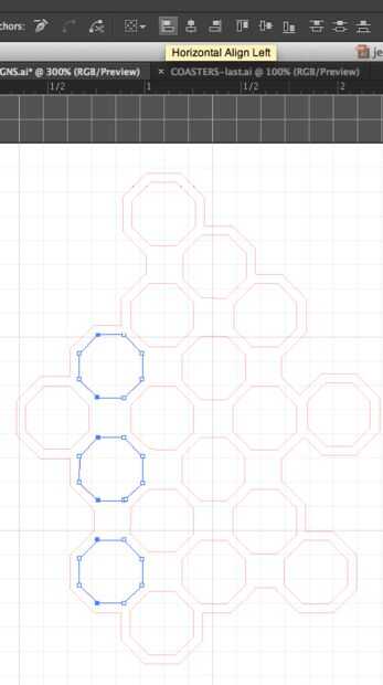 Asegúrese de que usted mantenga presionada la tecla Shift (⇧), para restringir el eje. Para verificar todos los puntos están alineados, seleccionarlos que deberían estar en filas perfectas (teclas de acceso rápido una) y utilizar las herramientas de alineación en la paleta alinear.