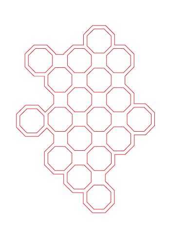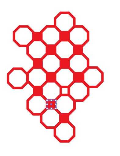 A continuación, rellene las plazas entre los hexágonos, haciendo un cuadrado y duplicando en cada agujero.