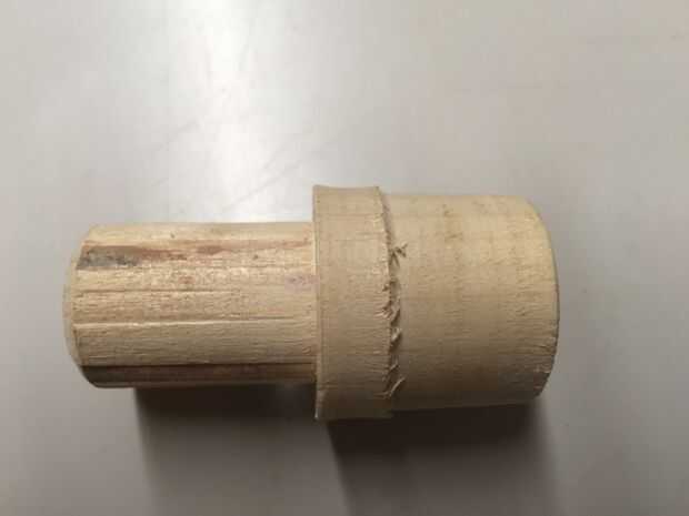 Un trozo de 2 x 4 o algún otro desecho y gire usted mismo una tirada de mermelada. Éste es aproximadamente 1-1/4" en el gran final de 3/4" en el extremo pequeño. Mina fue diseñado para ir en un mandril de desplazamiento. Vuelta a la forma áspera entre los centros y entonces puse en el mandril y Centre.