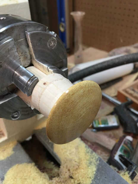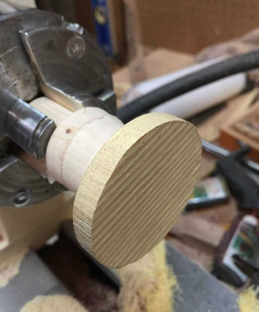 Usar la gubia del tazón de fuente a una forma de disco en la parte delantera de la botonera. La parte más gruesa debe ser aproximadamente 1/8" de espesor. Arena otra vez. No omita ningún grano. Terminar la parte delantera del mismo modo que has terminado la parte de atrás.
