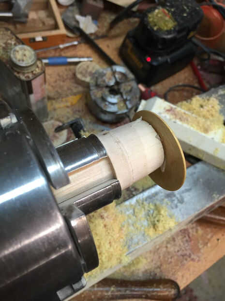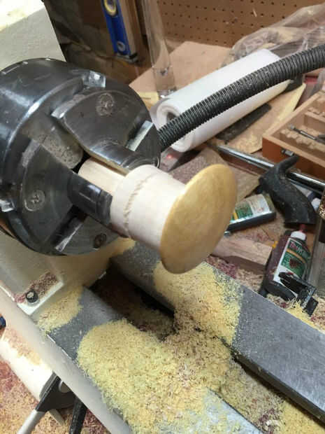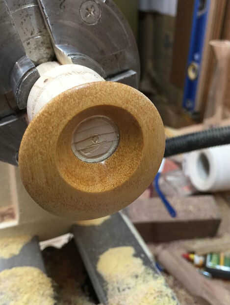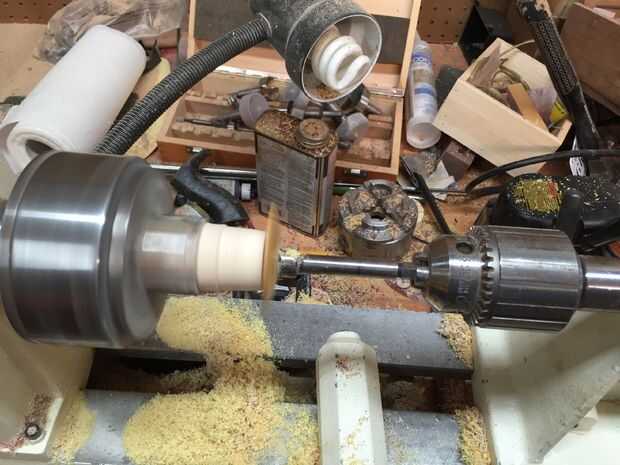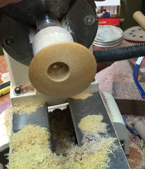 Convertir una forma de plato en el agujero. Detenga el torno a menudo para asegurarse de que no haga demasiado grande.