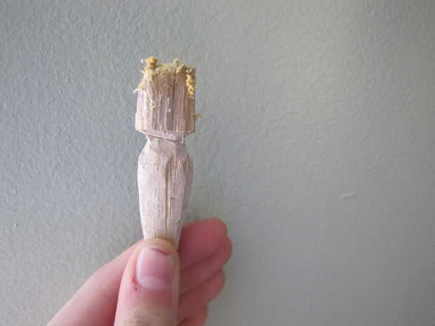 Como he mencionado anteriormente, cometí el error de usar un trozo de madera que no era muy suave. los resultados fueron una pieza abollada, desigual y "mutilada" de madera. Si el tuyo sale como este pero todavía quiere mantenerlo, utilizar masilla de madera para rellenar las abolladuras o mantenerlo como está.