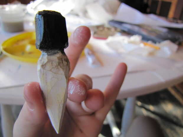 Poner en el marrón y el amarillo pintura es opcional. Hice esto para que se vea antigua, pero si tu no va para ese aspecto, el ir por delante y blanco.