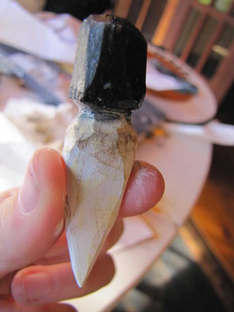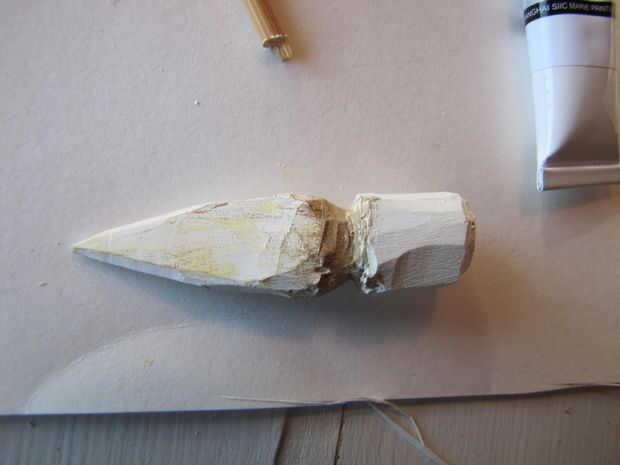 A continuación, tomar un poco de marrón o amarillo y lenguado en la parte inferior de la arboleda que le dan una apariencia desgastada. puede hacer esto en la punta y los lados de la botonera, así. Frote la parte sobrante para dejar algunos de los blancos por debajo de mostrar para que se vea desgastado.