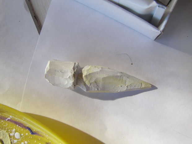 En primer lugar, aplique una buena cantidad de pintura acrílica blanca (suficiente para cubrir el colgante entero) y mezclar un poco de amarillo o marrón en él. Pintar su colgante todo con esto.