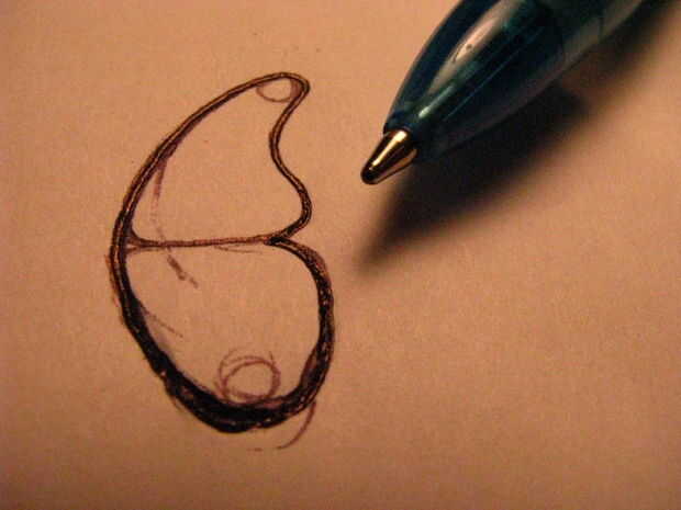 Utilice un bolígrafo para dibujar hacia fuera su mariposa. Este dibujo va a ser el tamaño exacto para el producto terminado.