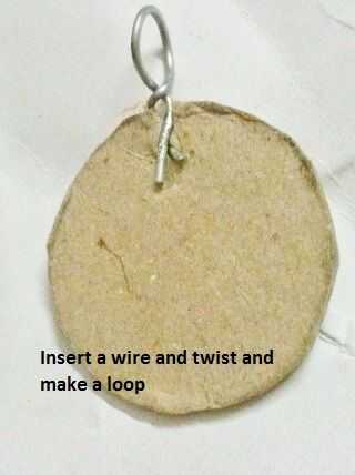 Hacer un agujero y pasar un alambre a través de torcer y hacer un lazo. Asegurar con pegamento caliente.