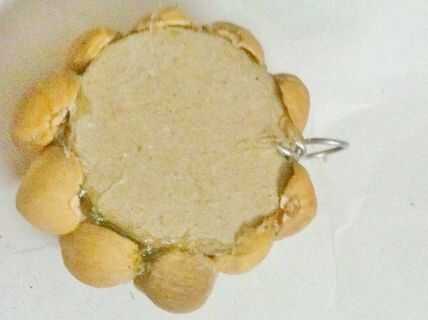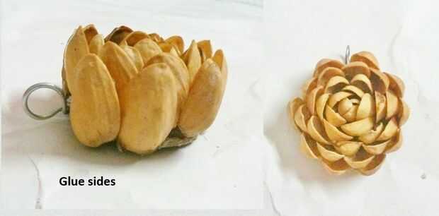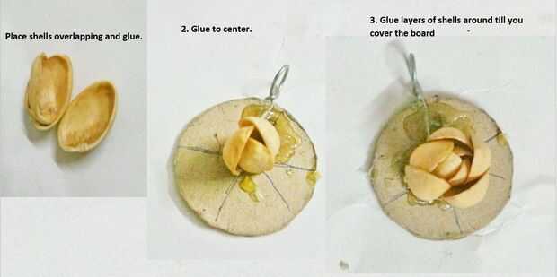 conchas de pegamento caliente alrededor de la vaina hasta que cubren el círculo.