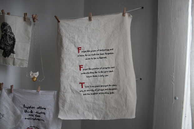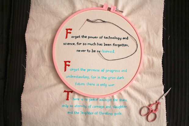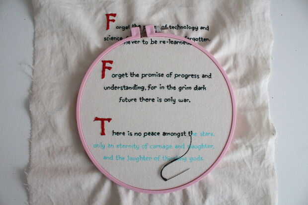 Me satén cosido primero así que podía sentir realizado y trabajado luego mi paso por el resto del texto. Pasé 1-2 horas por noche durante los primeros días, y luego el domingo tuve una sesión maratoniana de bordado y había terminado para arriba!