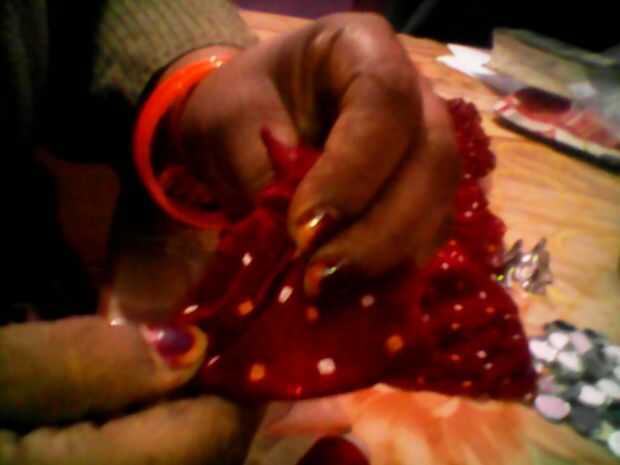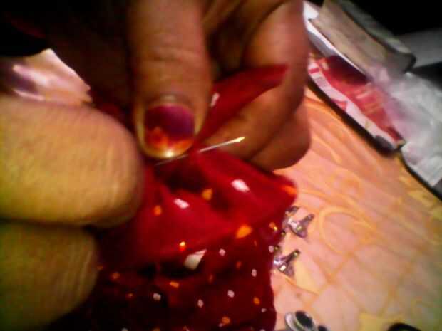• Cuidadosamente, coser la tela para sellar brazalete dentro de la tela, debería parecerse a lo mostrado en la imagen.