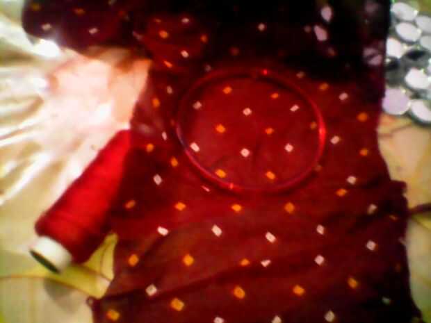 • Corte la tela en forma de un rectángulo y un brazalete en el medio.