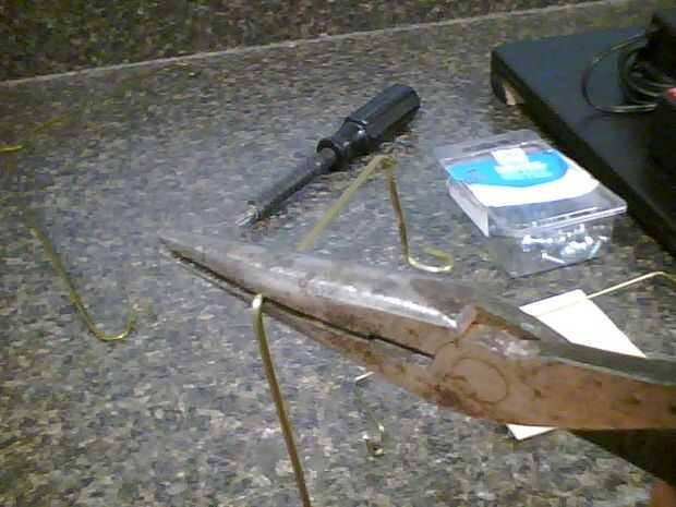 Ahora que la pedalera está montada, lijada y pintada es hora de doblar los alambres que los pedales a la Junta. ¿Si no quieres doblar los alambres, puede utilizar auto adhesivo de velcro?
